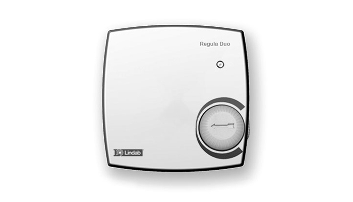 Regula Duo benyttes til individuell regulering av romtemperatur, hvor den ønskede temperaturen enkelt kan reguleres innenfor ±4°C ved hjelp av kontrollknappen. Standardinnstillingen er 21°C. Børverdien for ønsket verdi kan justeres på et potensiometer mellom 15 og 25°C.