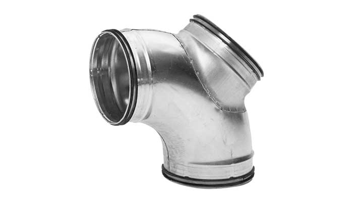 Presset og sømsveiset bend med separat gren for rengjøring. Stussen er utstyrt med en Safe-avgrening og passer til et inspeksjonsdeksel.